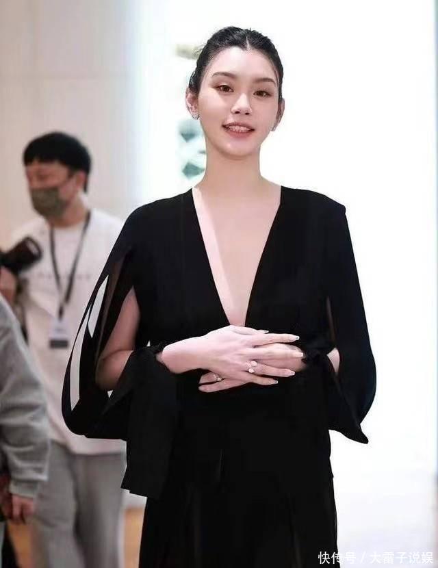 奚梦瑶身材保养得真好,一袭深V黑裙亮相,身材凹凸有致超有料